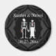 Magnet Réservez la date gothique Skeleton Bride & Groom Couple. Squelettes vraiment mignons avec un marié et une mariée, enregistrer le texte de la date, et les cartes postales de nom et de date mariage de mariée et mariée. Complet avec tophat bowtie, voile et coeur! Grande et très unique dave cartes postales date pour votre Mariage Halloween, Goth ou Mariage de thème!