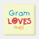 Gram Loves Me T-shirts, cartes, autocollants, sacs de carrosserie, et plus avec coloré rouge, jaune, et bleu texte et conception du coeur. Ces vêtements et cadeaux Gram Love me feront plaisir gramme sourire!