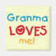 Granma Loves Me T-shirts, costumes, cartes, sacs et autres articles avec un design de texte bleu, rouge et jaune.