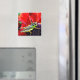 Cet aimant aux couleurs brillantes est doté d'une sauterelle verte, jaune et noire brillante perchée au centre violet d'une fleur aux pétales rouges magnifiques.
