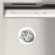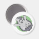 This magnet features a pen drawing of a cute little hedgehog with a smile on his face and a lot of energy. Behind the woodland animal is a green circle.