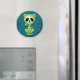 Cette adorable chatte verte est décorée de tourbillons et de motifs à points. Des pédales de fleurs jaunes entourent les yeux noirs purs dans la tradition du Jour des crânes de sucre morts. Le chat est assis, regardant vers l'avant avec sa queue agitant dans l'arrière - plan. La tête surdimensionnée est assise sur un corps minuscule qui crée une apparence ludique et caricaturale. Une étoile à cinq points se trouve au milieu du front du chaton, tandis qu’un coeur rouge et jaune vif apparaît au centre de la poitrine. Une ombre tombe sur l'arrière - plan bleu profond qui fait apparaître le design flotter juste au-dessus de la surface de cet aimant. Ce mignon petit chat est un design amusant et élégant inspiré par les beaux motifs du jour des crânes de sucre morts.