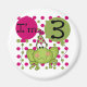 Les amateurs de grenouilles aimeront ce joli design de 3ème anniversaire de la Grenouille rose avec la grenouille verte portant un casquette de fête, des pois roses et verts et des ballons, et le texte qui dit "J'ai 3 ans".