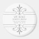 Simple et élégant Fancy Ornamental Save the Date Magnet en gris et blanc avec une bordure fleurie de style art déco sophistiquée. Facile à customiser, il suffit d'ajouter les détails de votre mariage dans les champs de texte fournis. Cliquez sur "Customiser" pour trouver d'autres options de personnalisation.