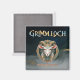Add a touch of dark fantasy to your space with this Grimmloch square magnet, featuring the official emblem of the narrative-based RPG by Opulent Code LLC. The detailed horned goat crest, paired with rich teal and gold tones and full Grimmloch branding, creates a bold and eye-catching design.