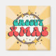 Christmas holidays retro sign, yellow red groovy xmas starry text