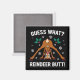 Playful Christmas humor featuring a reindeer bending forward and looking upside down between its legs. A fun festive scene with winter charm and lighthearted holiday spirit.