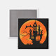 Une image éffrayante d'une maison hantée déplaisante, avec une chauve-souris volante au-dessus, le tout contre une pleine lune orange de sang pour Halloween.