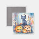 Aimant Halloween Chat Bleu Oriental Avec Peur Citrouille