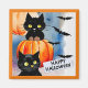 Une jolie photo de deux, chats noirs avec citrouilles et chauves-souris, est présentée sur cet aimant pour Halloween. Message sur l'aimant, "Happy Halloween", en fait une décoration mignonne pour la maison ou le bureau pour Halloween. Ça fait aussi un petit cadeau !