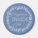 Happiness is an inside job graphic with a blue wreath and heart. Happiness, love and inner peace is always from within. Custom graphic design made with love.