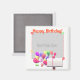 A birthday photo magnet with my image of colorful balloons flying out of a mailbox. Text says "Happy Birthday!"