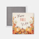 Parfait pour la saison d'automne, cet aimant coloré montre une récolte de citrouilles orange encadrés par des feuilles. Le texte au milieu dit "Happy FALL Y'All" en marron et orange. Tout est posé sur un arrière - plan beige clair.