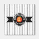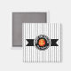 Cette conception d'aimant frigo dispose d'un citrouille Halloween sur un étiquette noir avec le texte 'Happy Halloween' Personnalisez avec votre nom ou autre texte. Arrière - plan est un motif étroit rayé noir et blanc.