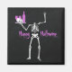 Joyeux Hallowine ! Les amateurs de vin apprécieront ce sentiment d'Halloween, présenté par un squelette sans tête fantaisiste tenant un plateau de boisson avec une bouteille de vin, des verres de vin, et - sa tête ! Ce squelette est présenté sur un arrière - plan de tableau noir foncé. Il peut facilement être supprimé et remplacé par un arc-en-ciel de choix de couleur foncée.