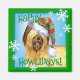 Célébrez la saison des Fêtes avec un Briard heureux portant un casquette plein entouré de flocons de neige et les mots, Happy Howlidays! Idée cadeau de vacances idéal pour la famille et les amis amoureux de Briard.