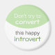Il n'y a rien de mal à être introverti. Donnez aux gens qui veulent vous rendre plus extravertis un message poli avec ce slogan qui dit : "N'essayez pas de convertir ce joyeux introverti"