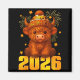 Aimant Happy New Year 2026 Highland Cow & Party Hat N