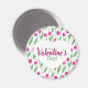 Happy Valentine's day magnet decorated with pink tulip pattern on white background.