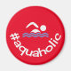 Un nageur de pictogrammes et la légende #aquaholic en font un aimant amusant pour quiconque aime nager. Conçu dans un gris argenté clair sur un arrière - plan rouge vif.