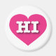 Cet aimant est doté d'un coeur rose chaud et vibrant contenant les lettres coques supérieures, blanches et audacieuses HI, l'abréviation officielle de Hawaii, l'état d'aloha.