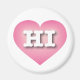 Cet aimant est doté d'un coeur rose avec un centre blanchi contenant les lettres coques supérieures et audacieuses HI, l'abréviation officielle de Hawaii, l'état d'aloha.