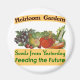 Heirloom Gardens Semences d'hier, Nourrir le futur jardinier dire pour les épargnants vintages de fruits et légumes semences et les producteurs. En lettres rétro et futuriste avec raisins, poire, tomate, carottes et maïs.