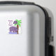 Un joli hippo pataugant dans l'eau avec un parapluie violet ombragé. Un palmier dans l'arrière - plan. Dit 'Heureux comme Hippo'