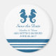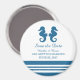 Élégant et classique cheval de mer nautique Sauvez l'aimant de date avec une paire de hippocampes simples et un ensemble de bandes en bleu marine foncé et blanc. Ce thème de plage nautique enregistrer l'aimant de date peut être facilement customisé avec vos détails mariages. Pour plus d'options de personnalisation, cliquez sur le bouton Customiser.