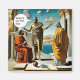 Three men dressed in ancient attire engage in a lively discussion about fishing, with a backdrop of a vast landscape and ancient architecture.
