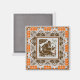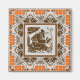 un motif à couture croisée avec une bordure art déco et un moine apothécaire se réchauffe devant un incendie.