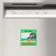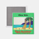 "Mele Kalikimaka est ce qu'il faut dire lors d'un jour de Noël hawaïen brillant". Elle fait le Hula avec un palmier décoré dans le fond. Passez votre réfrigérateur ou votre casier avec cet aimant amusant!