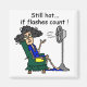 T-shirts d'humour de bouffée de chaleur, tasses, magnet, boutons, cartes, autocollants, ornements, keychains, et plus comportant Stella s'asseyant devant un fan disant elle est encore chaude… si les flashes comptent ! Si vous avez jamais éprouvé des bouffées de chaleur vous trouverez ces articles d'humour de bouffée de chaleur hilares !
