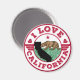 I Love California State Map and Flag. S'inspirant du drapeau de l'État, ce design présente un code couleur rouge, blanc et vert, ainsi que des coeurs rouges. Ce tableau présente les éléments clés du drapeau de l'État, y compris l'ours et l'étoile, et une silhouette de la carte de l'État. Avec la typographie en détresse cool avec l'expression 'I LOVE CALIFORNIA'.