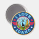 I Love Idaho State Map and Flag (Carte et drapeau de l'État de l'Idaho). S'inspirant du drapeau de l'État, ce design présente un code couleur rouge, blanc et bleu, ainsi que des coeurs rouges et des étoiles blanches. Ceci encadre la pièce centrale du Grand Sceau à partir du drapeau de l'État, en affichant la carte de l'État à l'intérieur du bouclier. Avec la typographie en détresse cool avec l'expression 'I LOVE IDAHO'.