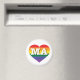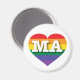Cet aimant présente un coeur de fierté arc-en-ciel et les lettres majuscules chaudes et blanches MA, l'abréviation officielle pour Massachusetts, l'état de la baie. Montrez vos vraies couleurs, soutenez l'égalité dans le mariage et célébrez le gay pride.