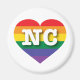 Cet aimant présente un coeur de fierté arc-en-ciel contenant les lettres majuscules en gras, blanc NC, l'abréviation officielle de Caroline du Nord, l'état talon de goudron. Montrez vos vraies couleurs, soutenez l'égalité dans le mariage et célébrez le gay pride.