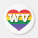 Cet aimant est orné d'un coeur de fierté arc-en-ciel recouvert de lettres majuscules blanches et audacieuses WV, l'abréviation officielle de la Virginie-Occidentale, l'état de la montagne. Montrez vos vraies couleurs, soutenez l'égalité dans le mariage et célébrez le gay pride.