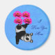 I Love You Mom magnet with a picture of a cute little panda bear juggling bright pink zinnia flowers. You can change or add any text you like. Please visit my store for more cards and gifts just for Mom.