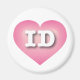 Cet aimant est doté d'un coeur rose avec un centre blanchi contenant l'ID gras, blanc, en lettres coques supérieures, l'abréviation officielle de Idaho, l'état de la perle.