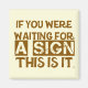 This reads, "if you were waiting for a sign, this is it." Who knows, it be a sign...