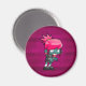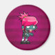 Un aimant avec une jolie illustration de fille zombie avec cheveux roses chauds et peau verte mort. Portant une tenue à thème punk rock. Ses bras s'étendirent à la recherche de cerveaux. Placé sur un arrière - plan de style grunge magenta foncé avec des rayures défraîchies.