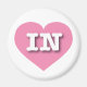 Cet aimant est doté d'un coeur rose vif contenant les lettres coques en haut, blanc et gras IN, l'abréviation officielle de Indiana, l'état hoosier.