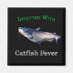 Que vous soyez en train de nouer ou de pêcher avec un hameçon et un peseur, peu de choses se comparent à attraper un poisson-chat puissant et délicieux. Yum. Image détaillée en couleur complète d'un poisson-chat avec le texte Infecté par la fièvre de poisson-chat.