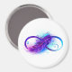 Infinity symbole with a beautiful feather painted in purple and blue bright colors on white background