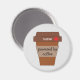 Cet aimant affiche une tasse de café brune avec le texte "infirmière - alimentée par du café." Il y a une croix rouge à côté de "l'infirmière".