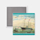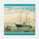 Illustration de voyage vintage faisant la promotion de l'Inman Steamship Company, montrant un premier bateau à vapeur d'une conception de transition avec gréement à la voile avec des cheminées fumées.