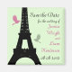 Des nuances subtiles de rose et de vert, une écriture française fantaisie et une belle silhouette de la Tour Eiffel mettent en avant la romance de votre événement à thème parisien avec ce Save the Date. Il fait partie des Inséparables de la ligne mariage complète (vert), et également disponible sous forme de carte.