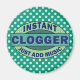 "Instant Clogger : Il Suffit D'Ajouter De La Musique." Ce joli frigo design magnétique pour les danseurs de clog est doté d'une bannière ovale dans les tons vert, bleu et blanc avec des notes de musique et des rayures. L'arrière - plan est bleu-vert avec des pois blancs. C'est un joli aimant pour le fan de clog. Voir les variations et les motifs de colmatage plus originaux sur notre lien ClogDance shop!