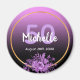 Magnet glamour pour un 50e anniversaire avec un noir et rose élégant et moderne, dégradé violet, fond ombré. Avec un cadre doré faux, et des fleurs aquarellées violet et ultra violet. Modèles pour nom, âge et date, lettres blanches et violettes. Parfait comme souvenir ou comme rappel pour vos invités.